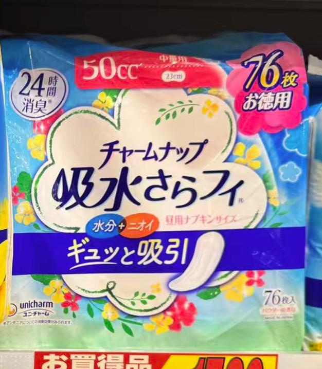 苏菲 UNICHARM尤妮佳 抗菌消臭卫生巾护垫 中量用 50cc23cm 花香 超值大包装76枚入