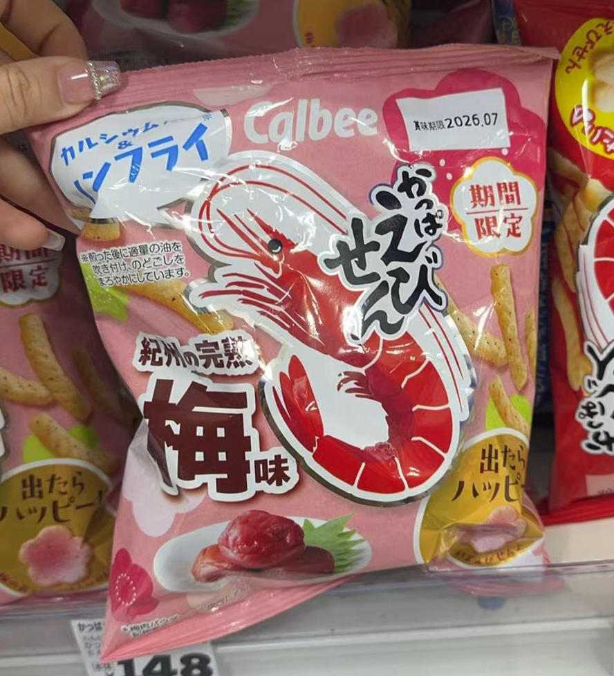 卡乐比CALBEE 期间限定 白虾100%使用 梅子味袋装膨化虾条 64g(断货退款)(只能发邮政线路)